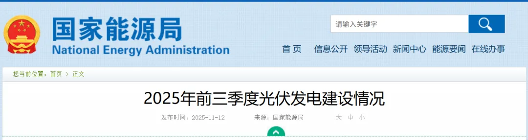 11月12日,國家能源局發(fā)布2025年前三季度光伏發(fā)電建設情況。